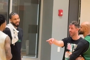 新发型亮眼!塔图姆现身训练场 与怀特&新援安芬尼-西蒙斯聊天