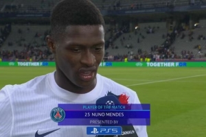 长途奔袭助攻!努诺-门德斯当选巴黎vs巴萨全场最佳球员