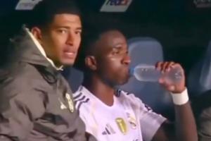 不满马斯坦托诺?维尼修斯被换下后一路喋喋不休,贝林厄姆一直劝