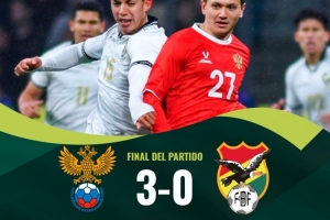 国际足球友谊赛:俄罗斯3-0完胜玻利维亚,后者18射仅4正