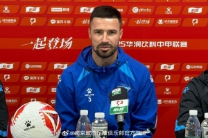 中甲第27轮南京城市主场迎战定南赣联。今天下午,南京城市代理教练魏强携队员伊西奇出席赛前新闻发布会。