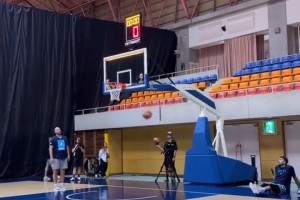 东契奇投篮热身调戏训练师:来防我呀!然后调高弧度命中三分😂