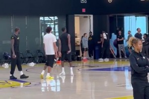 湖人队内训练,中锋全在练三分,斯玛特也在单独加练三分