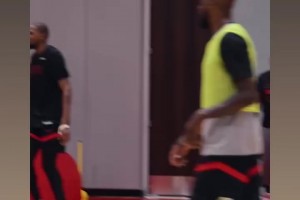 08年美国梦八队内训练,詹姆斯和保罗互相打闹,甜瓜一旁看着