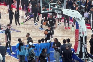 篮网教练能不能给机会?中国赛现场球迷记录曾凡博热身画面