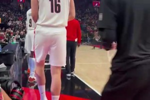 大哥你是在开拓者替补席?拿起手机对着杨瀚森屁股一顿拍!😂