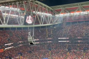若塔照片出现在加拉塔萨雷球场的大屏幕上,现场掌声雷动!